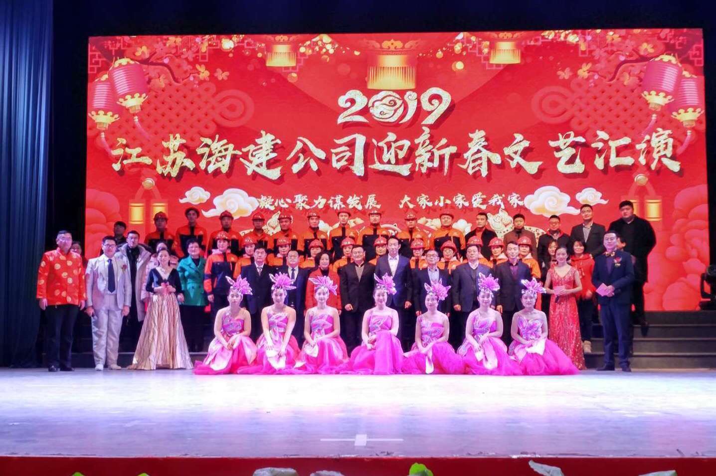 1月20日,江苏海建公司在市群艺馆举办2019年迎新春职工文艺汇演,九州app最新版下载,九州(中国)领导、共建单位、合作业务单位以及海建公司领导班子及公司职工代表和职工家属近400人观看演出。