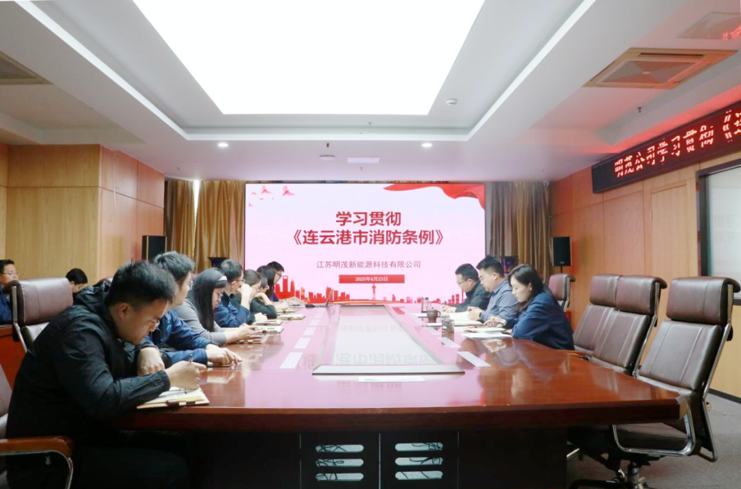 4月23日下午,明茂公司组织学习《连云港市消防条例》,会议由公司总经理刘东主持,公司领导班子、各部门及权属单位负责人、主管、一线班组长及安全管理人员30人参会。