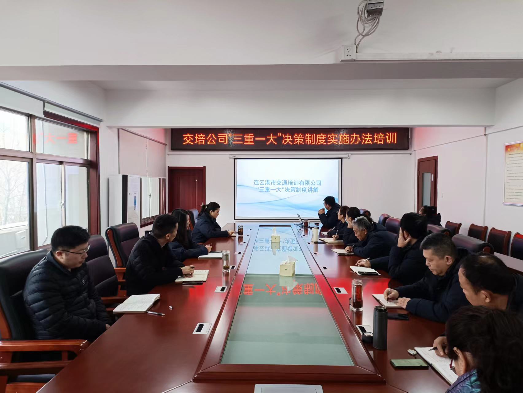 为进一步加强公司制度建设,明晰工作流程,12月29日,交培公司结合实际,对新修订的“三重一大”决策制度实施办法,开展宣贯及培训,公司领导班子、中层管理人员参加此次培训。