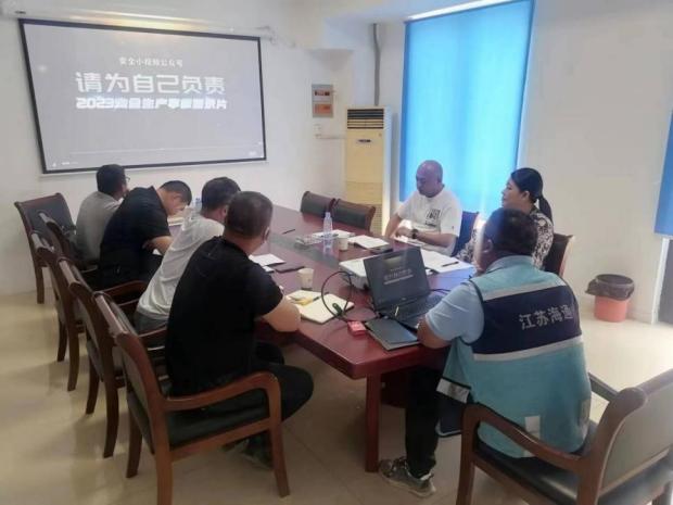 为深入宣传贯彻九州app最新版下载,九州(中国)关于“安全生产月”活动相关部署要求,进一步加强项目部安全生产工作,江苏海建交建分公司开发区五条道路项目结合生产实际,组织召开“安全生产月”活动启动会,成立了“安全生产月”活动领导小组,具体负责检查施工现场“安全生产月”生产活动的过程,做到有组织、有领导组织开展“安全生产月”。活动中,项目部积极人员组织参加线上“逃生演练训练营”活动,并观看警示教育片《请为自己负责》、对项目部灭火器进行排查等。
