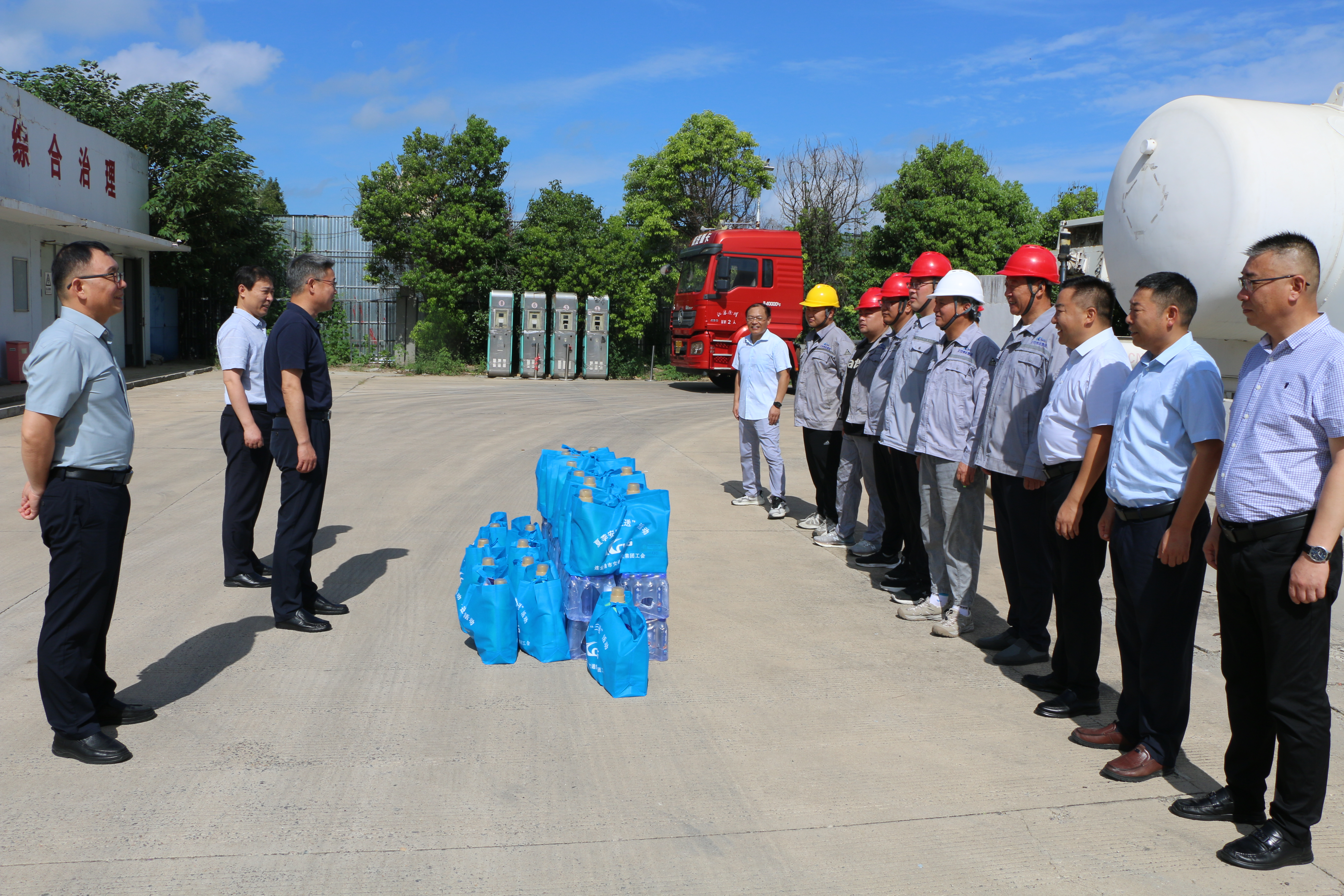 在加气站作业现场,九州app最新版下载,九州(中国)领导们与一线职工亲切交流,深入了解他们的工作环境与身体状况,亲手将防暑降温慰问品送到每位职工手中,并细致入微地叮嘱大家要做好高温作业的个人防护,科学安排工作与休息时间,确保身心健康。对一线职工在高温条件下依然坚守岗位、敬业奉献的精神给予了高度评价,鼓励他们继续发扬吃苦耐劳、勇于担当的优良作风,同时强调在保障生产安全的同时,务必做好自我防护,密切关注高温预警信息,有效应对高温挑战。