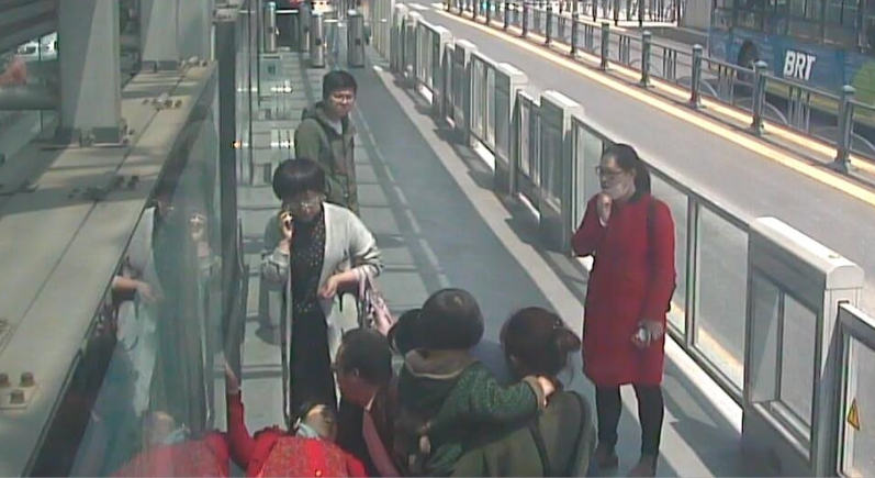 4月25日上午10点50分,一四九医院下行站站台一名女性在站台内等车时,面色惨白晕了过去,同行的老伴赶紧向周围人呼救帮忙,热心乘客纷纷前来帮忙,有打抢救电话的,有过来帮忙摁老人人中的。正在卖票的站务员彭真红发现站台有人围在一起,把站台门关好后跑去查看,发现情况后及时的维护站台秩序。最后在大家伙的帮助下,用了不到十分钟的时间就把晕倒的老人送进了医院。