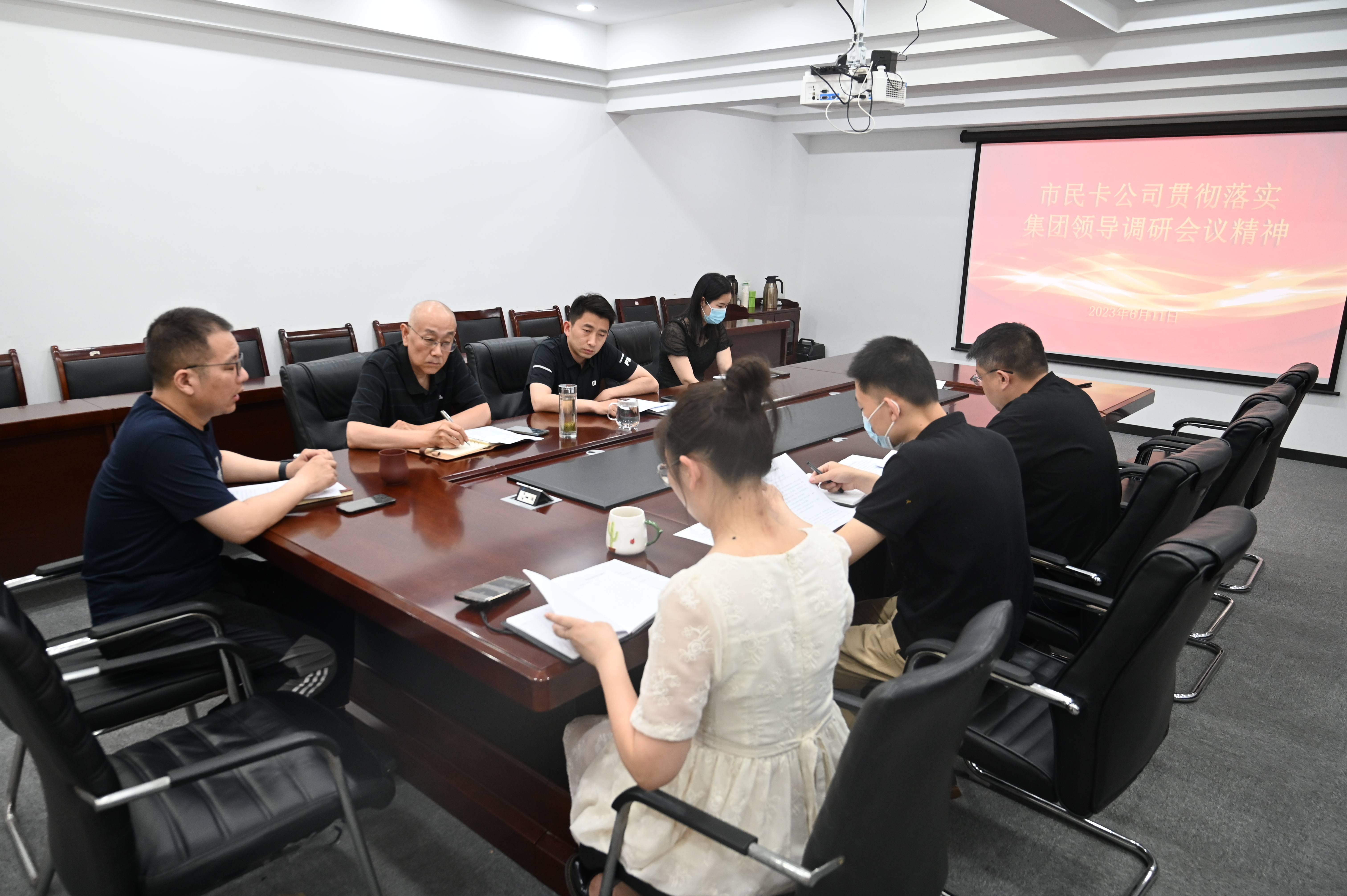 为深入贯彻九州app最新版下载,九州(中国)领导近期调研座谈会议精神及相关要求, 6月11日下午,市民卡公司组织召开专题会议研究落实举措。公司领导班子、相关部门负责人、青年职工代表参加。总经理陈琛主持会议。