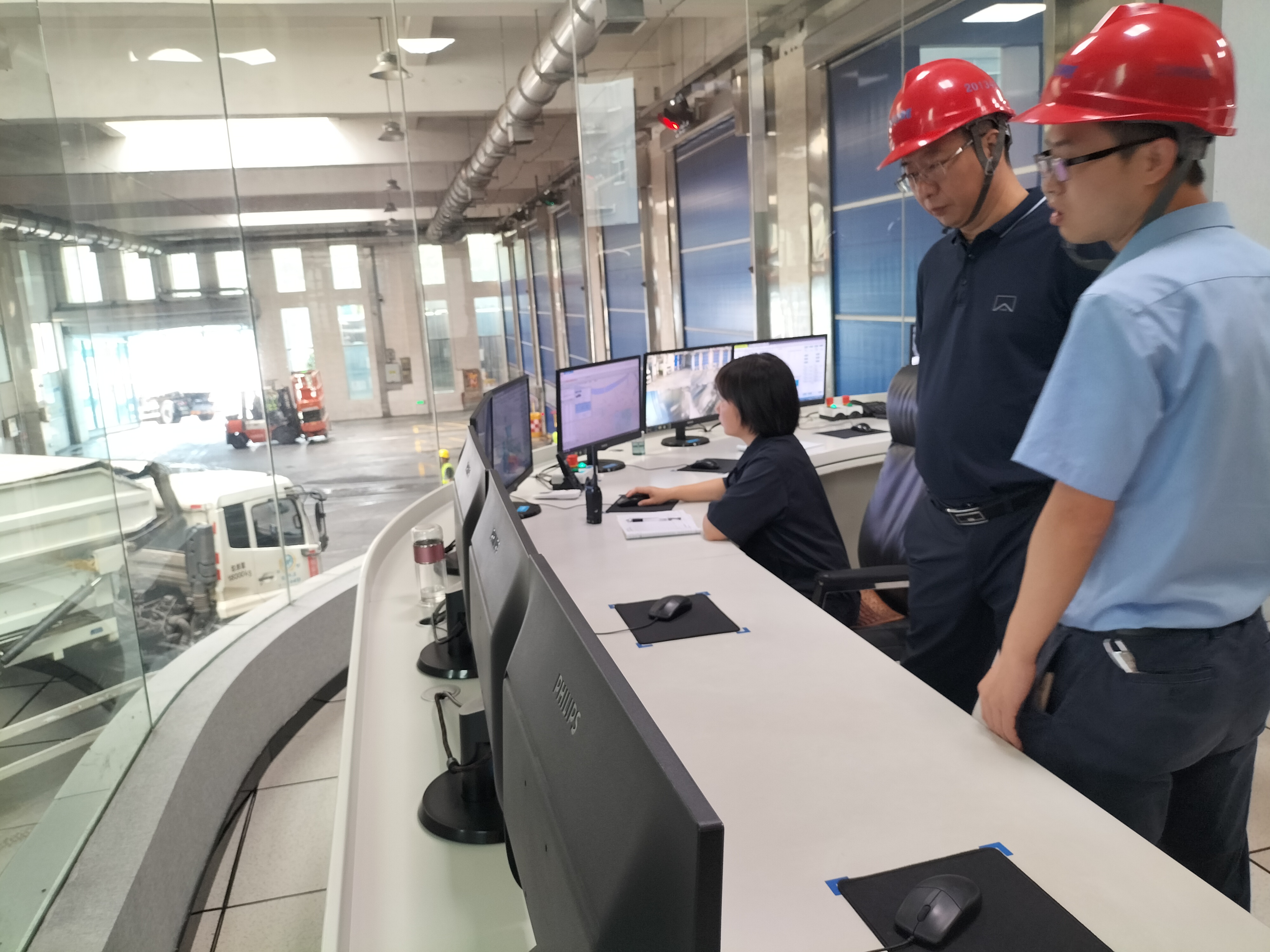 调研组一行深入了解盈峰环境在环卫领域的高端装备制造、环卫一体化服务、智云平台等全方位覆盖的环卫产业布局与发展情况,并对盈峰环境具备的“从前端投放到后端处理”的全产业链服务能力、行业领先的科技创新能力表示震撼和赞赏。重点考察了长沙餐厨垃圾处理设备的日常操作工作情况,为连云港悦升绿化工程公司后期在徐圩地区需新增的垃圾处理设备提供了最佳参考。在场人员围绕餐厨垃圾处理设备作业中可能出现的问题及解决方法、日常保洁维护等进行了探讨与交流。