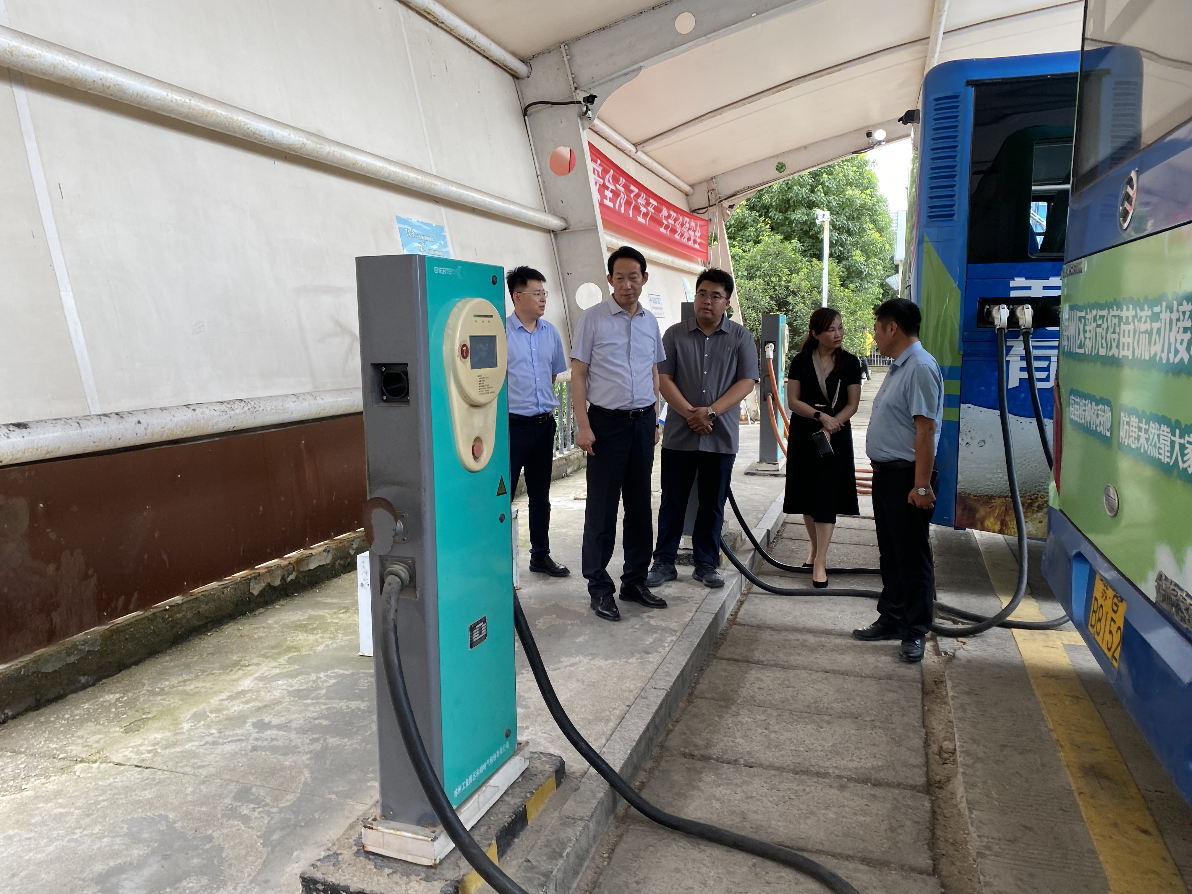 6月26日上午,九州app最新版下载,九州(中国)副总经理王中永,办公室主任于振国、副主任孙婷带队到来到明茂公司西城充电场站督导检查安全生产和消防安全等工作。