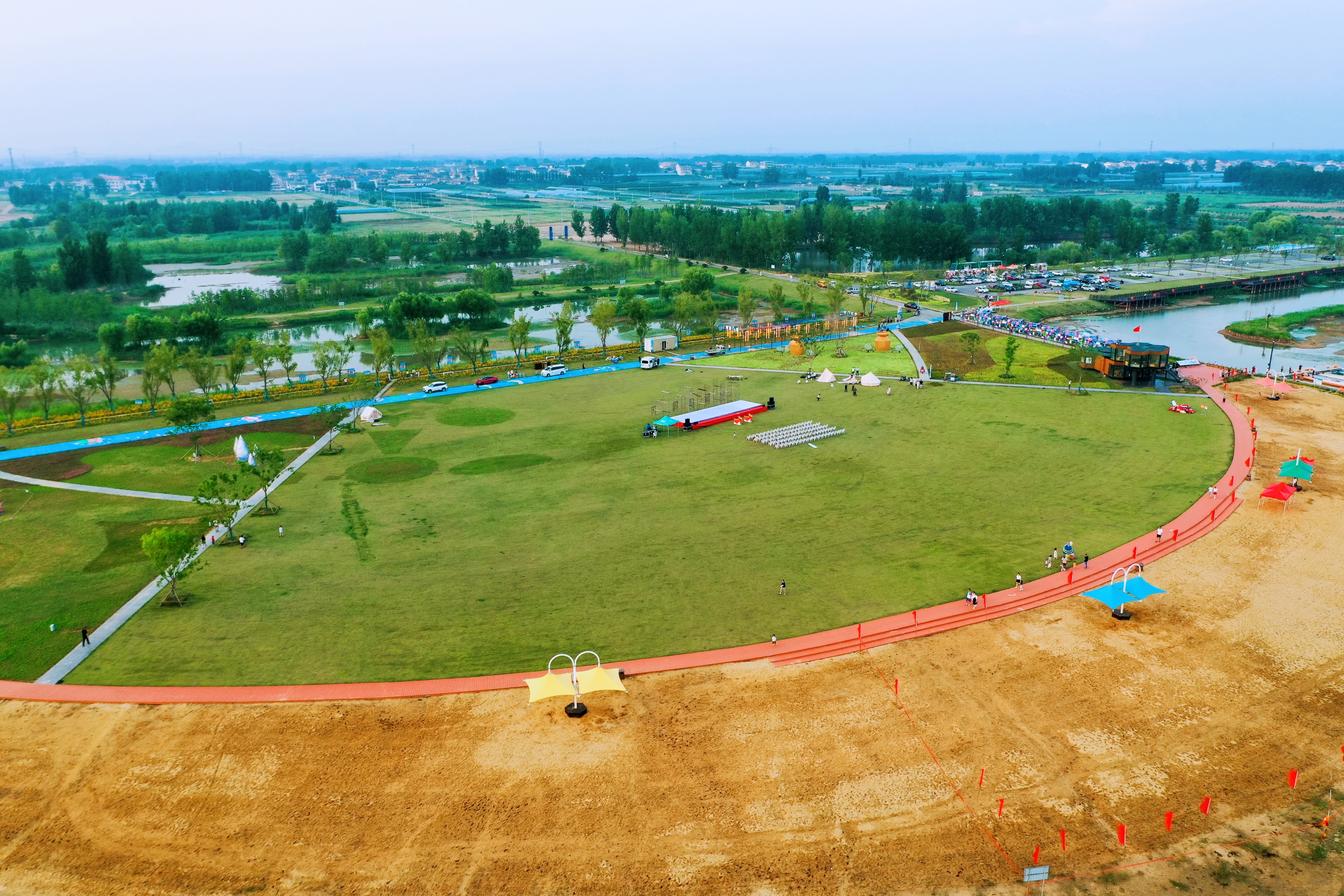 与渔人码头隔水相望,九州app最新版下载,九州(中国)打造的石梁河水库生态修复二期工程先导示范点黄金沙滩已与20日完工开园,废弃砂坑航道在生态修复改建下,因地制宜地成为了一处展现沙文化、水文化、库区劳动文化的观光打卡景点。“日月征程”“渔舟芭蕾”等7个主题沙雕各有寓意,“趣味沙世界”“迷你亲子水世界”“月亮湾”等5个主题片区将风光与功能科学搭配,驿站、盥洗室、茅草屋、停车场等服务设施齐备,为湖畔观景游玩提供了无限可能。
