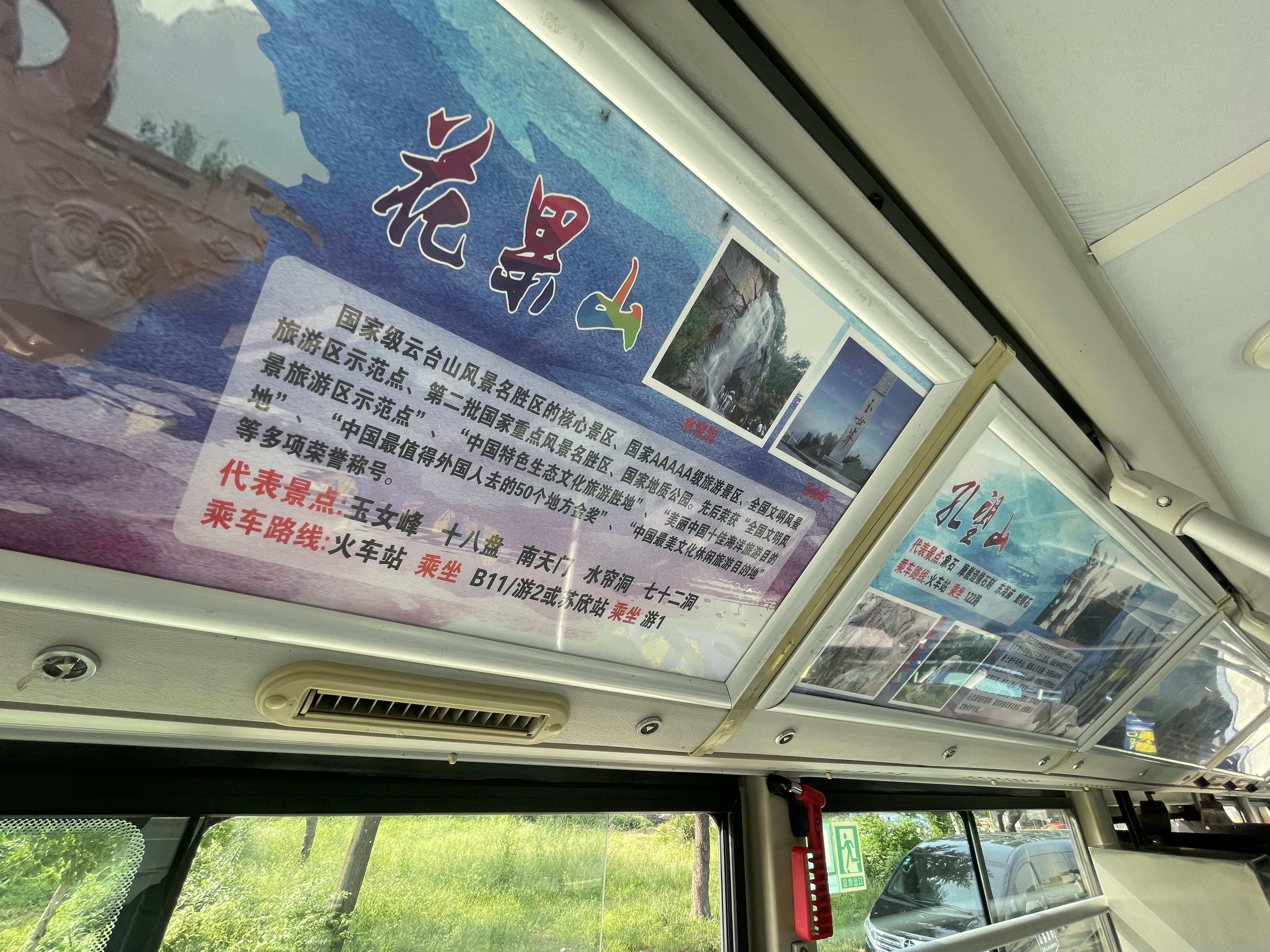 公交游1路走向为西门公交站至花果山风景区,线路全程52公里,途径47个站点,串联石棚山、孔望山、花果山等港城特色旅游景点。主题车厢是乘客了解连云港旅游景点的一个重要窗口,车厢内的看板上分别展示了全市13个旅游风景区的情况简介及公交转乘线路走向,不仅方便来连乘客第一时间掌握出行走向,也大幅度提升了游玩幸福感。同时,主题车厢还以“与雷锋车同行”为导向,在车厢内为乘客提供了雨伞、旅游导向图等便民设施。