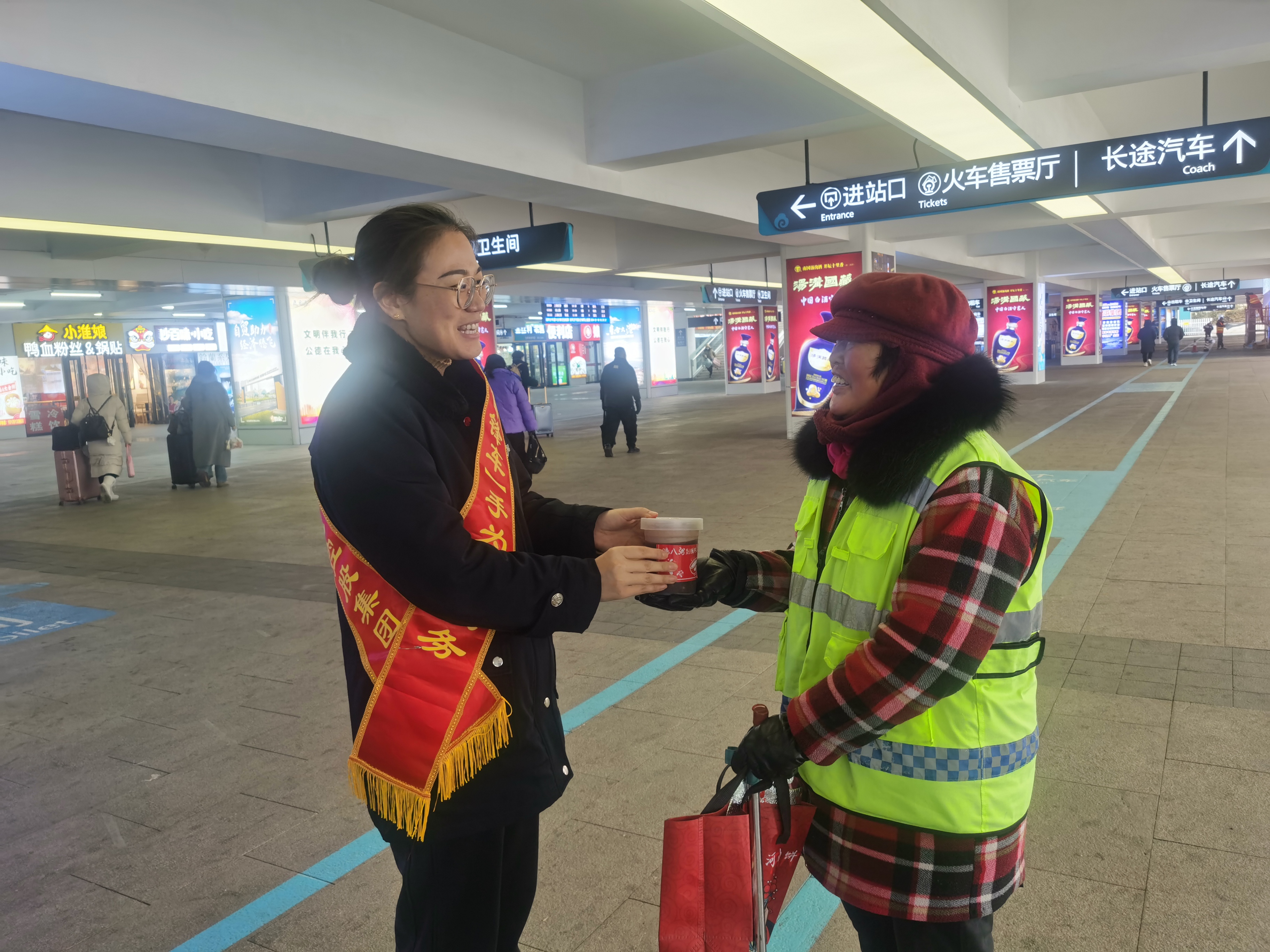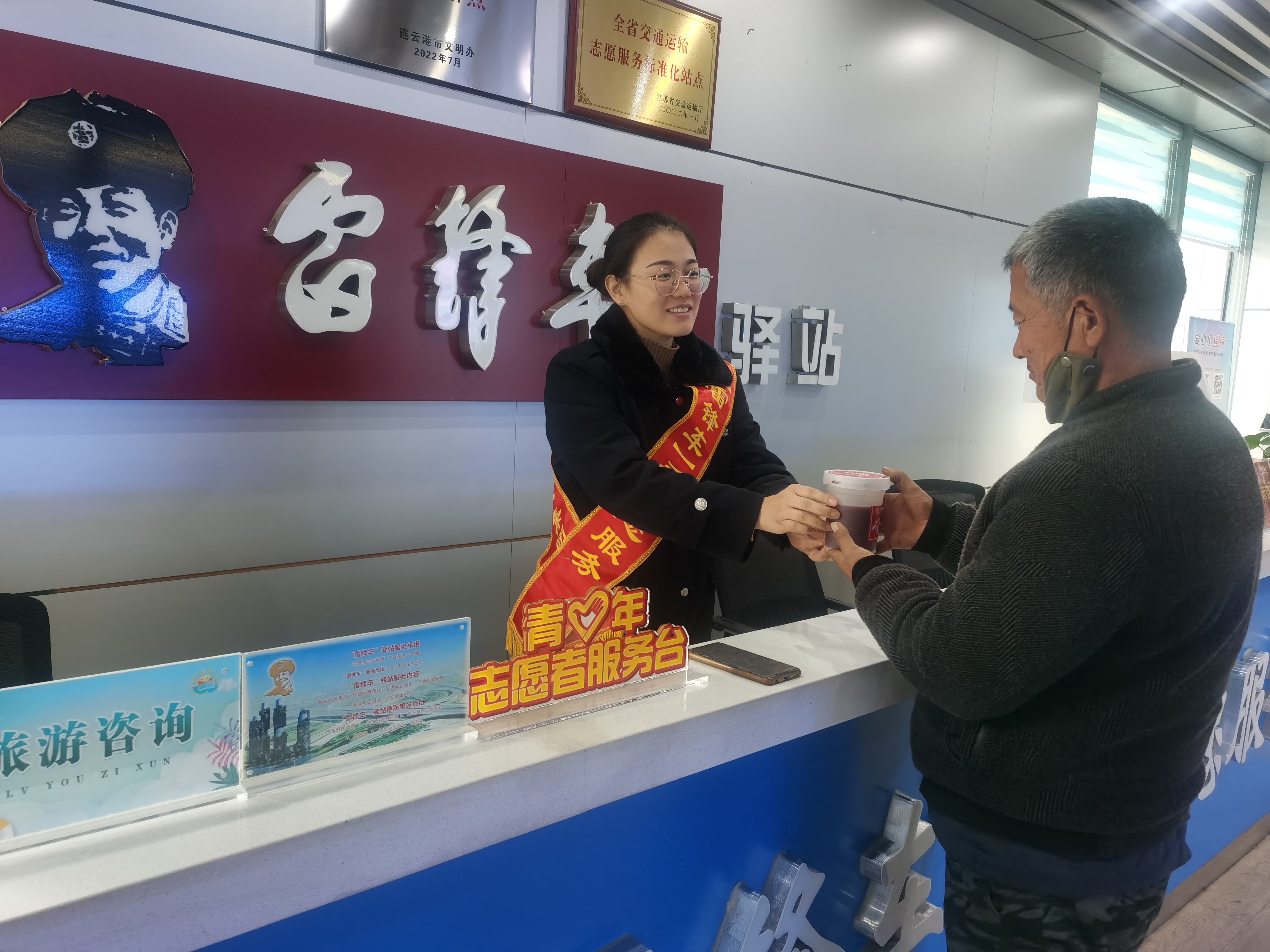 新浦汽车总站“雷锋车”驿站在这个特殊的节日,与市城管广场办、浦西街道新中社区工作人员一道,将腊八粥送给来往旅客、一线环卫工人等提前送上新年祝福,让他们在寒冷的冬日感受到“雷锋车”手的暖心服务。
