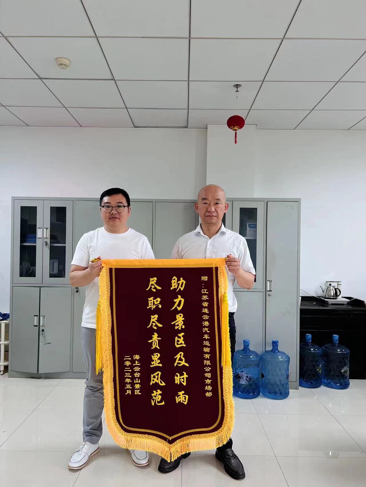 近日,海上云台山景区工作人员来到汽车公司,送上了一面“助力景区及时雨 尽职尽责显风范”的锦旗,向在“五一”假期为景区游客群众贴心服务、保驾护航的汽车公司驾驶员表示衷心感谢。