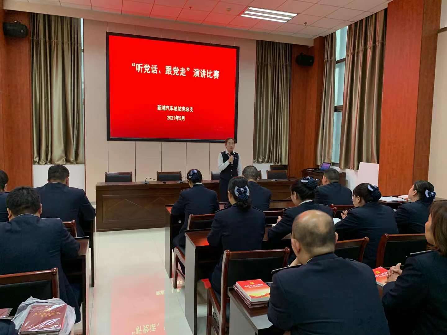 为庆祝中国共产党成立100周年,感悟革命先辈的家国情怀,传承红色基因,展现时代风采,鼓励引导党员和入党积极分子演讲红色经典,学习百年党史,铭记红色精神。新浦汽车总站党总支5月26日下午开展了“听党话 跟党走”演讲比赛,12名党员和入党积极分子参加比赛。
