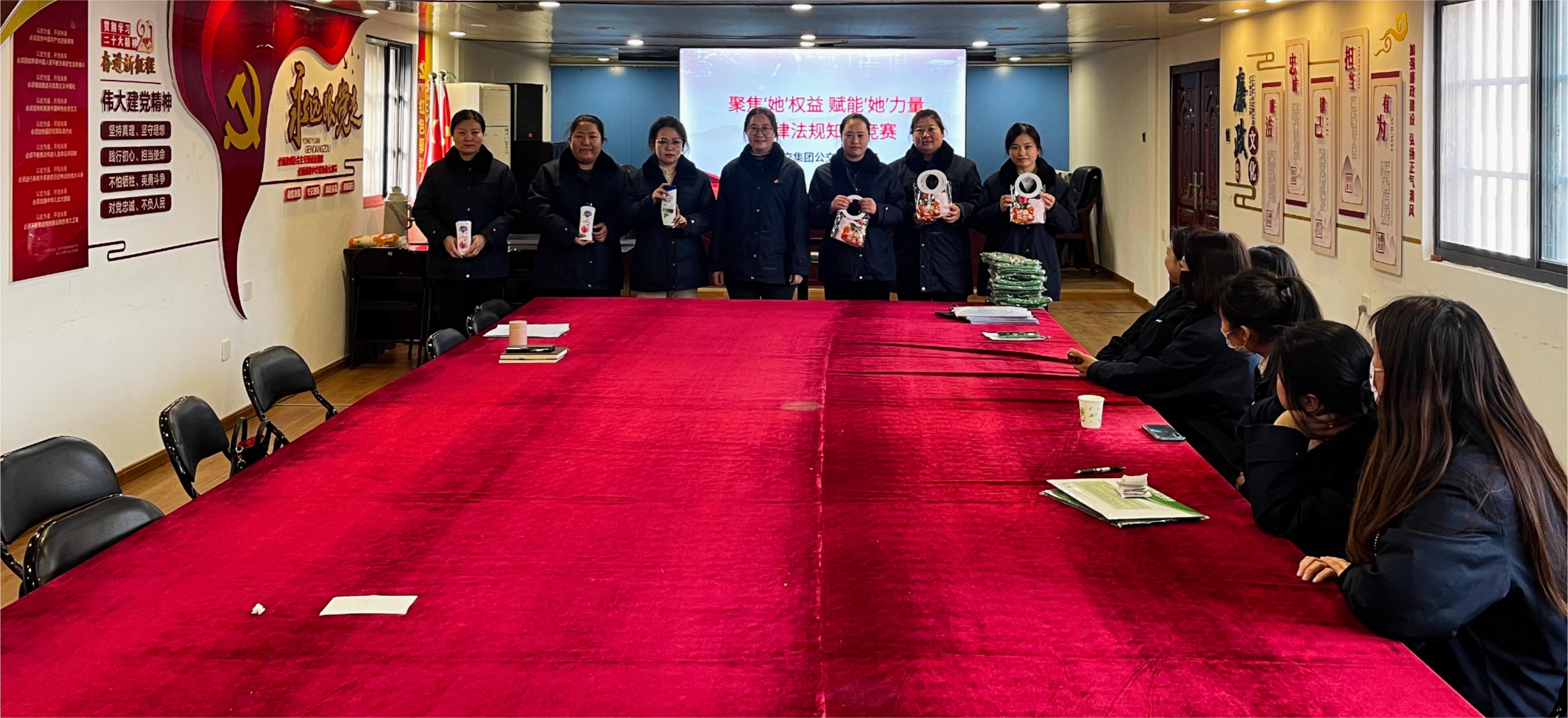 3月是“女职工普法宣传月”,为深入学习宣传习近平法治思想,加强职工法治思想宣传教育,依法保障女职工合法权益和特殊利益,进一步提升女职工知法、懂法、守法的能力,3月21日下午,公交九州app最新版下载,九州(中国)公交事业一部组织开展主题为“聚焦‘她’权益,赋能‘她’力量”法律法规知识竞赛活动,活动分为“普法宣传”和“知识竞赛”两项内容。